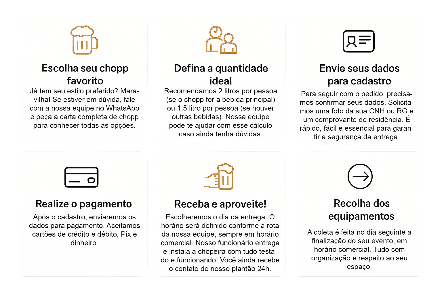 Vamos te ajudar a escolher o melhor chopp, calcular a quantidade ideal e cuidar de tudo para sua festa ser inesquecível.